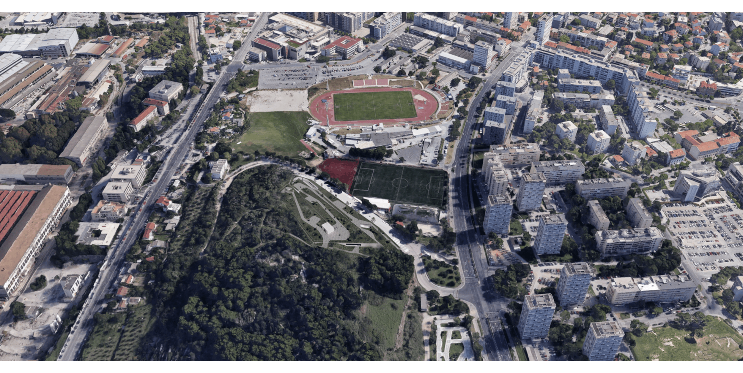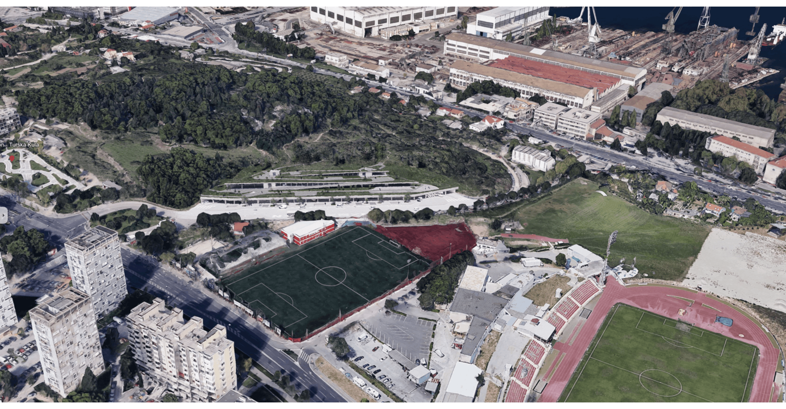 The Park&Ride garage is located within a hill known as "Turska kula" between the Poljud sports complex and the NK Split stadium.